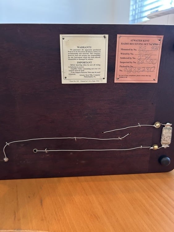 For more information on the exhibit and the crystal set history, see the August 1989 issue of Antique Radio Classified (ARC), specifically the article titled 'Atwater Kent Crystal Sets - Part 1: Did Atwater Kent Manufacture a Crystal Set?' by Ralph Williams.