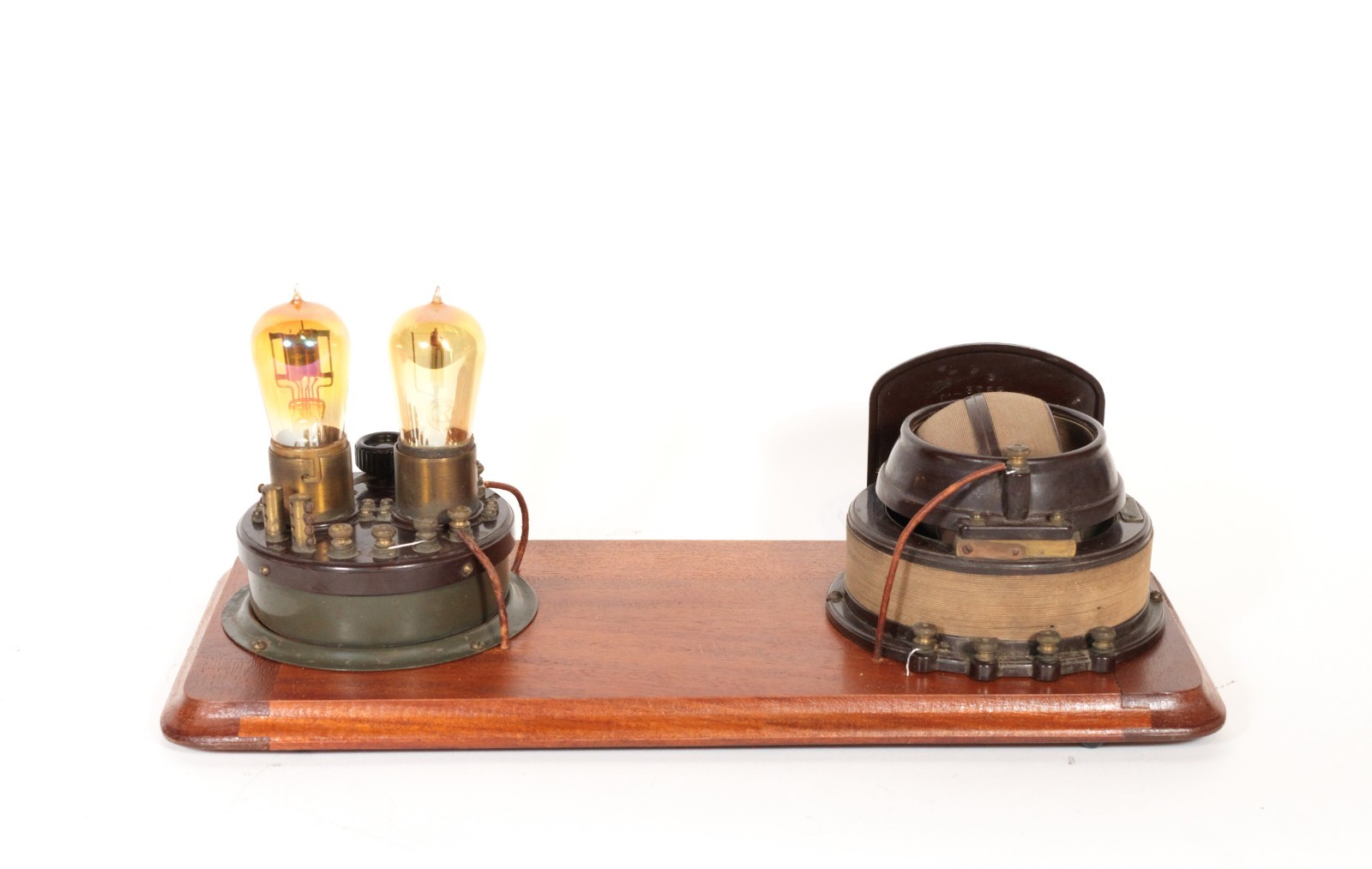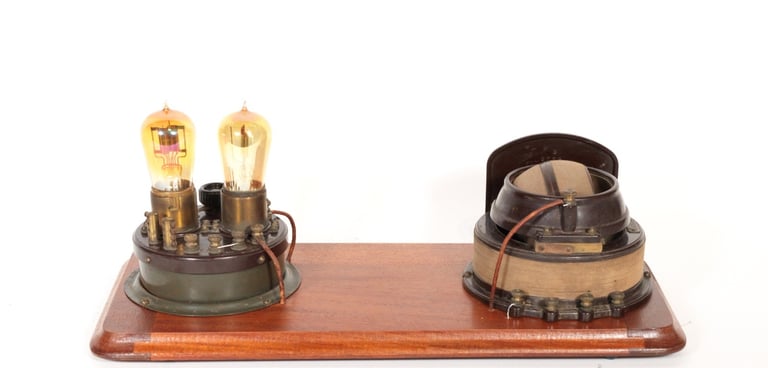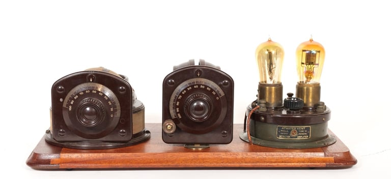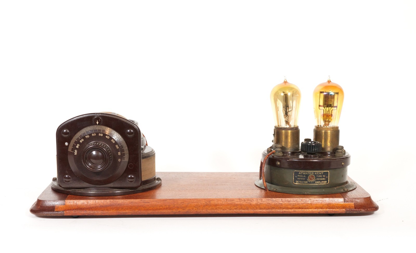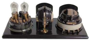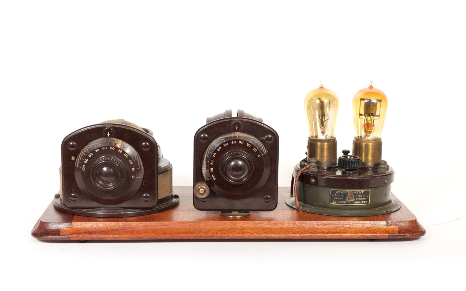 The Atwater Kent No. 3925 (Model 1) Receiving Set holds the distinction of being the company's first factory-built tube radio, introduced in November 1922 with a debut price of $32.00. This two-tube "breadboard" model was simpler than its successor, featuring a tuner, detector, and a single stage of audio amplification. Its designed tube line-up often specified a Type 00 tube for the detector and a Type 01 tube for the amplifier, though collectors note the flexibility to use other contemporary tubes. Like the later Model 2, the Model 1's design was a direct response to avoiding the costly patent license for regenerative circuits held by RCA. Atwater Kent strategically sold the set without the central variometer installed. Board dimensions are 18-1/2" x 8-1/2".