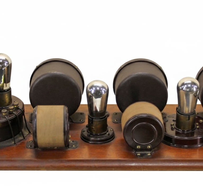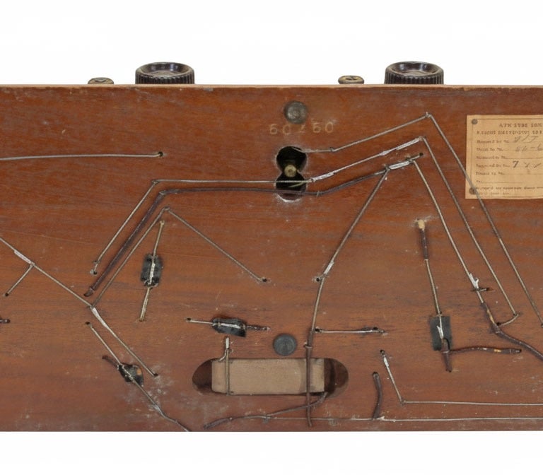 The Atwater Kent No. 4700 Model 10C Receiving Set was the final and most refined mass-produced version of the three-dial breadboard, introduced on May 29, 1924. This set maintained the established, high-performance five-tube Tuned Radio Frequency (TRF) circuit, featuring two RF amplification stages, one detector, and two AF amplification stages, powered typically by four UV-201A tubes and one UV-200 detector tube. The core design of the 10C was driven by simplifying the internal circuitry for more reliable and cheaper mass production.